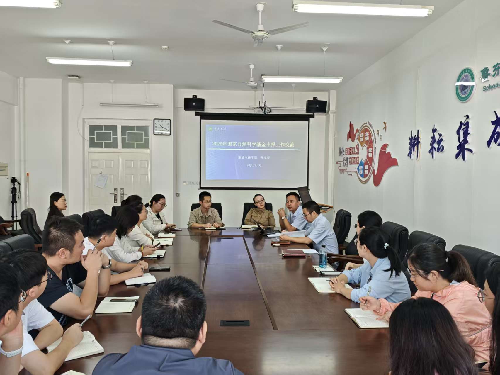 张立春指出,国家自然科学基金是评估学院科研综合水平的关键标尺,在引领基础研究进步、助力学科体系完善、支撑高水平科技人才成长等方面具有不可替代的重要作用,全体专任教师都应予以高度重视。他强调,学院将始终坚持“科研引领发展”、“以科研促质量”的理念,系统推进有组织科研,优化学科布局,稳步加强科研团队建设,不断完善管理服务体系,全力保障国家自然科学基金项目的高质量申报与实施。(撰稿:赵国栋 审核:卢太平)