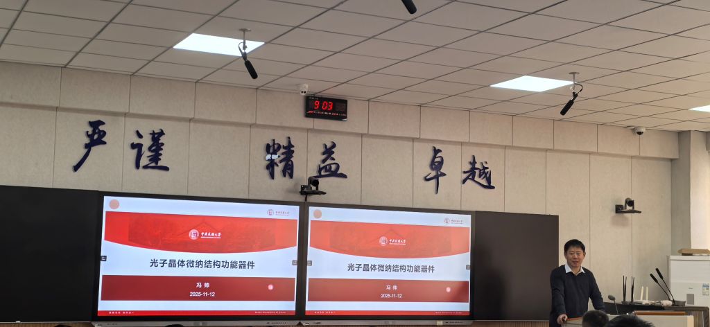 冯教授首先简要回顾了光学学科从几何光学、波动光学到现代集成光学、纳米光学的发展历程,指出光子晶体器件是现代光学领域的核心研究方向之一。随后,围绕光子晶体微纳光学功能器件这一核心主题,冯教授结合自身多年研究积累,系统阐述了光子晶体功能器件、微构表面、全光集成计算器件等领域的研究背景、核心技术难点与最新发展趋势,详细讲解了光子晶体器件的设计原理、制备工艺及应用场景。